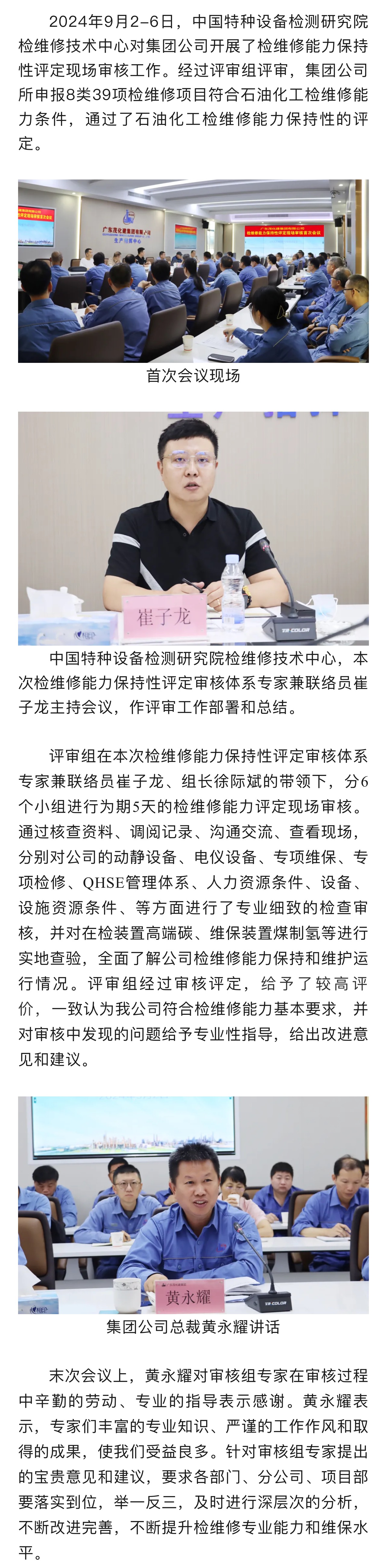 集團(tuán)公司檢維修能力保持性評(píng)定現(xiàn)場(chǎng)審核工作圓滿(mǎn)完成