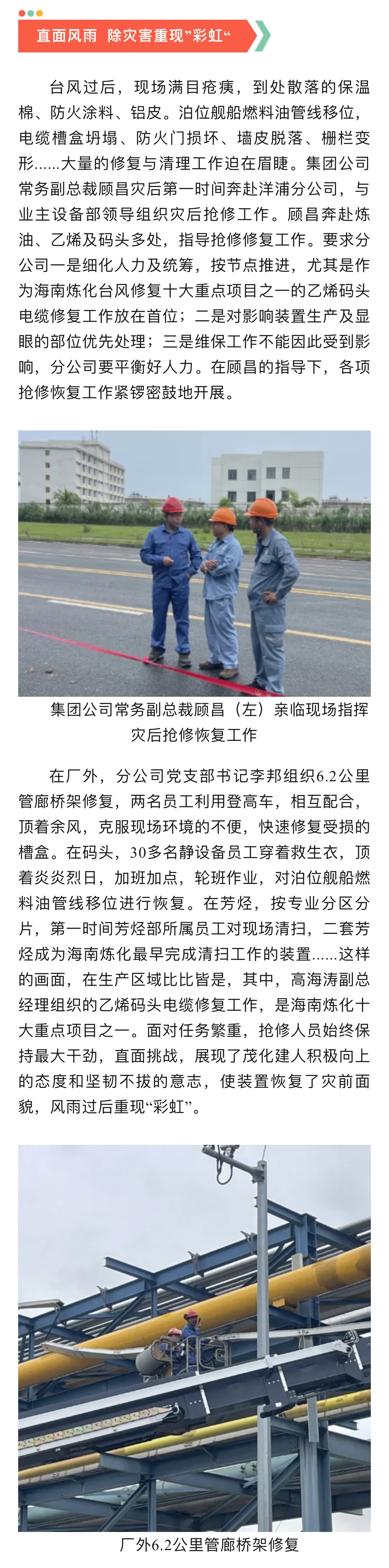 茂化建洋浦分公司抗擊超強臺風(fēng)"摩羯”獲業(yè)主高度表揚