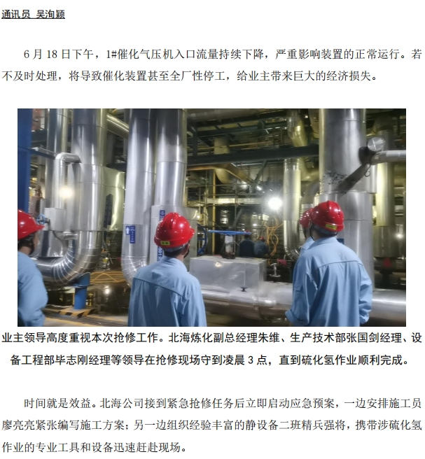 北海公司:5 小時高效搶修,力保催化裝置穩(wěn)定運行