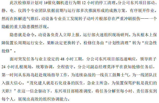 湛江分公司東興項目部:疾速 40 小時,打贏中科煉化催化煙機搶修攻堅戰(zhàn)