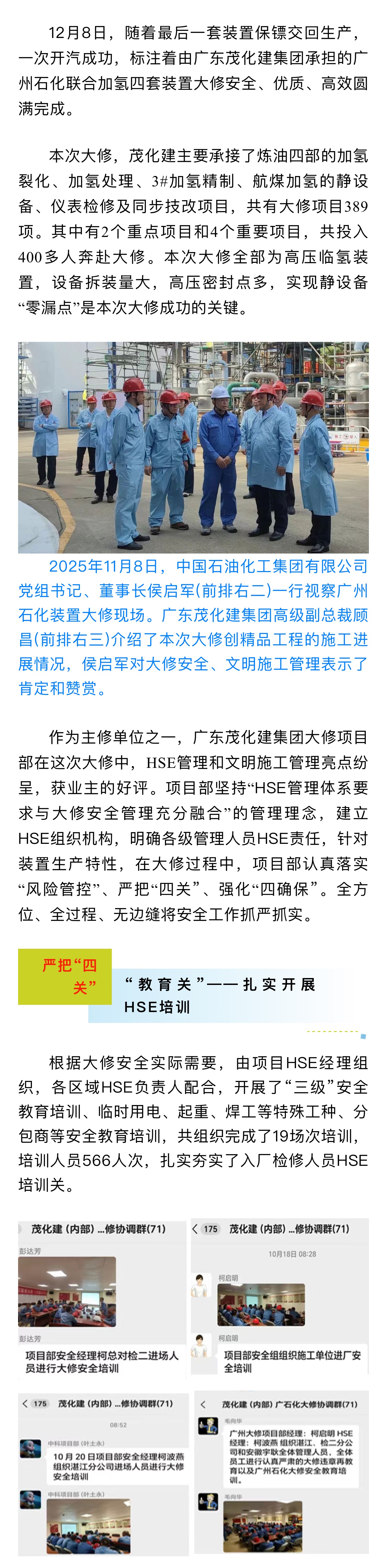 嚴(yán)把“四關(guān)” 強(qiáng)化“四確?!?| 廣東茂化建集團(tuán)圓滿完成廣州石化大修