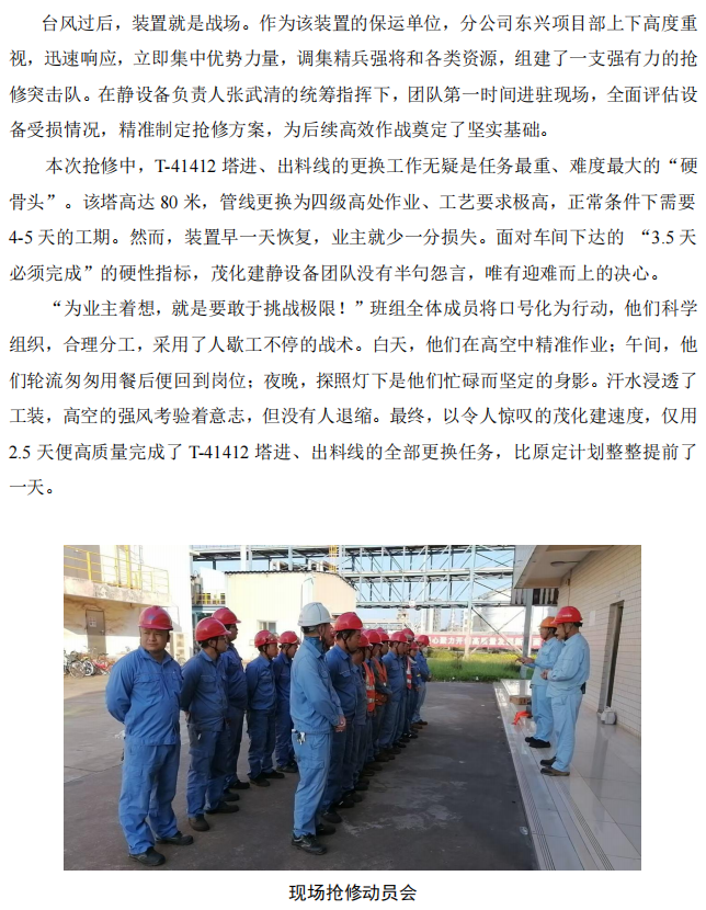 湛江分公司東興項(xiàng)目部:16 天鏖戰(zhàn),決勝中科煉化苯乙烯裝置搶修