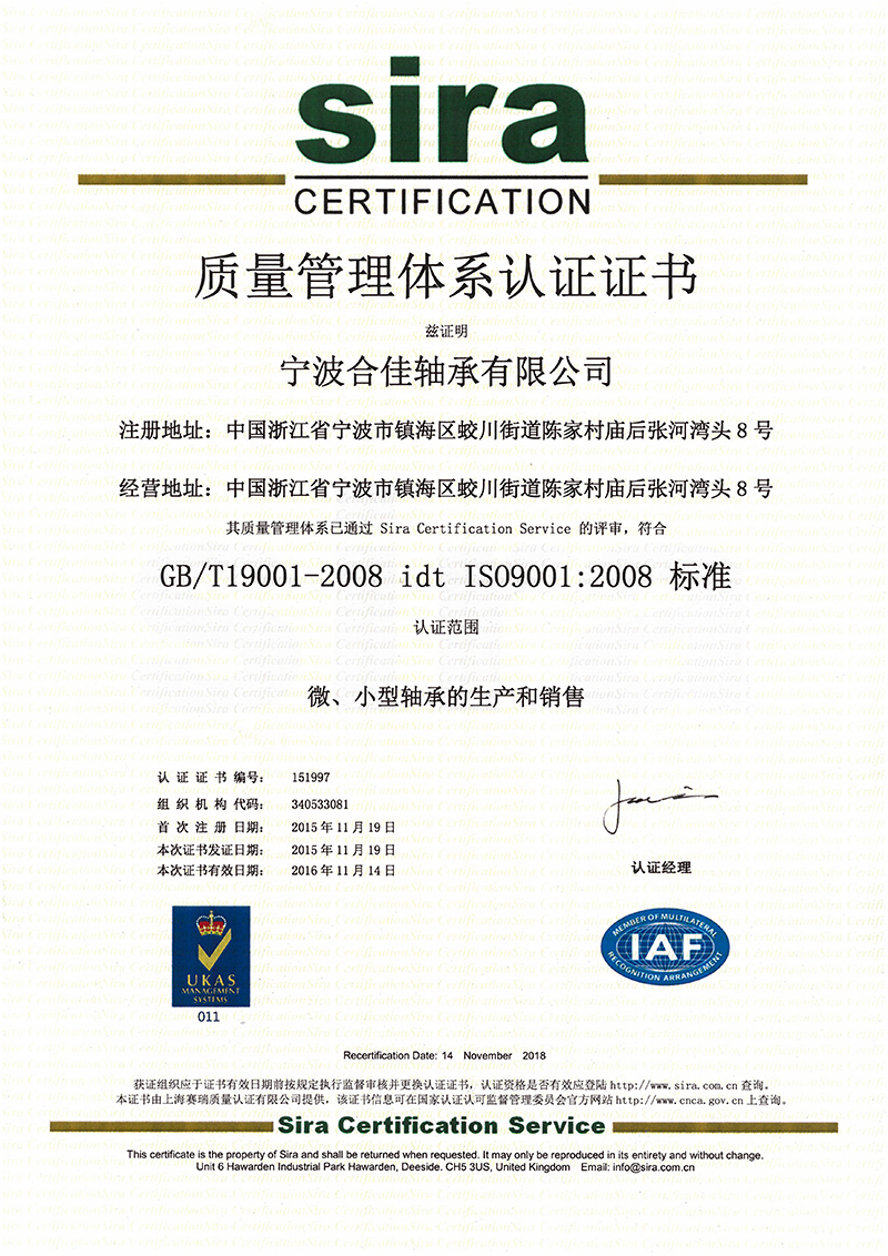 發(fā)布:合佳軸承時(shí)間:2015/11/25首先熱烈祝賀我公司正式通過(guò)ISO9001:2008國(guó)際標(biāo)準(zhǔn)質(zhì)量體系認(rèn)證。